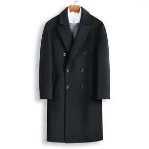 2022二列が長いですね。毛コート男性秋冬毛コートの長いラシャは太ったコートを厚くします