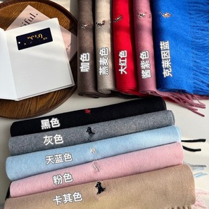 R1秋冬新作ラフカラー小馬標刺繍純色クラシック多色男女同柄ウールマフラー
