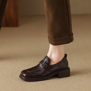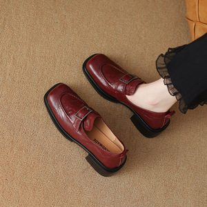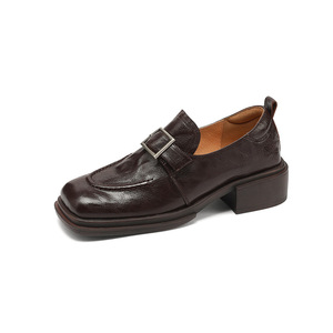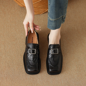 復古の小さい革靴の2024秋の新しい女性靴の太さと中と対外貿易の大きいサイズの40-42革のバックルの深い口の靴