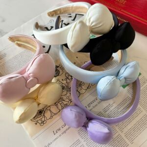 甘い蝶結びのカチューシャの少女の純色の高級感のサテンの顔はかわいい王女の団子の頭の飾りの髪飾りの女性を合わせます。