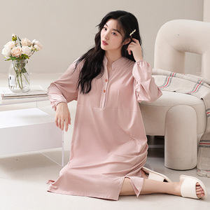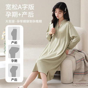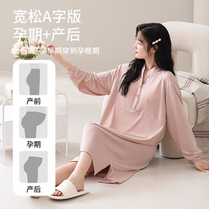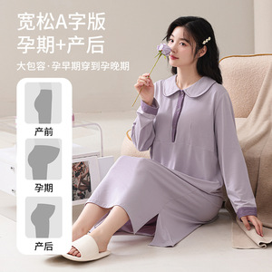 パジャマレディース春秋プルオーバー純綿長袖胸当て付き月子妊婦授乳前ボタン出産予定スカートパジャマ