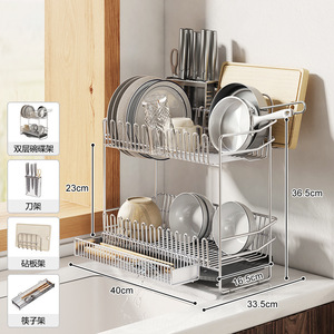 304 二層ディッシュラック + まな板ラック + 箸ホルダー + ナイフホルダー