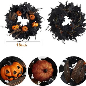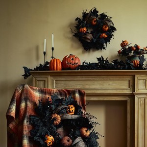 ハロウィーン前門花輪ユーカリ花輪カボチャ羽カエデ壁窓庭花園農舎家