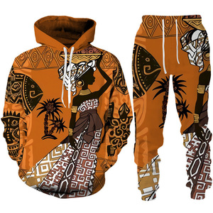 アフリカ民族文化デジタルプリント男性式衛衣セットクロスボーダー新型帽子衛衣長ズボン3d衛衣