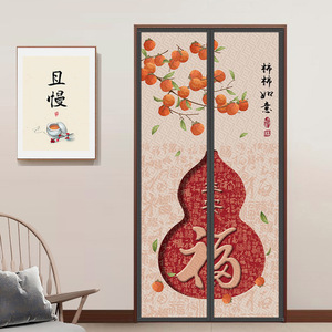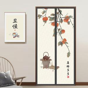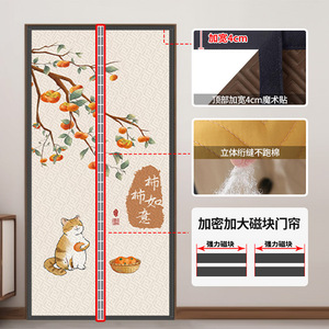 【中分割マグネット】Xishi Duoduo-コットンドアカーテン(3面幅広ベルクロ)