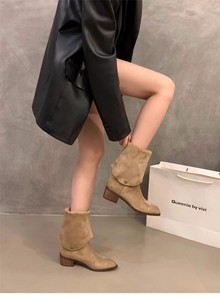 マーティンブーツ レディース マットスエード 2WAY パイルブーツ 2025秋冬新作 太ヒール V字ロングブーツ トレンディ