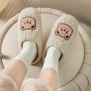 外国貿易在庫品 小熊柄綿スリッパ 女性用 2025年秋冬新作 滑り止め 静音 室内 オフィス用スリッパ 男性用 卸売