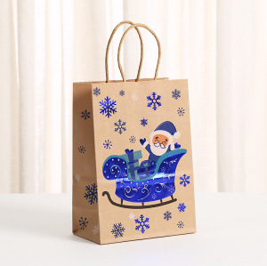 パーティーキャンディギフトバッグ卸売りプリント漫画ショッピングバッグ青いクラフト紙袋クリスマス包装袋