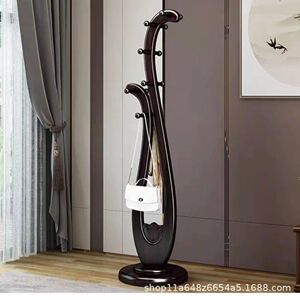 全実木掛けハンガー床置き寝室シンプル新中国式レトロ芸術服ハンガーリビング置物収納棚