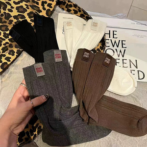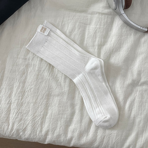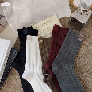 安可拉紅欧品深セン南油アルファベット布標中筒靴下の子供の高級縦縞理ネット赤山積靴下