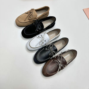 チャンネルグッズ!東莞純正オリジナル 24 新しいレトロな古い色のレースアップフラットビーニーシューズ女性用レイジーローファー
