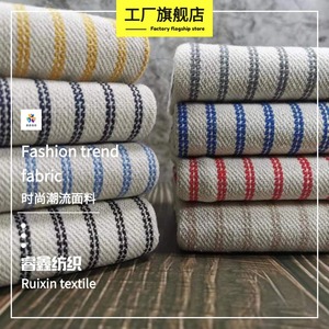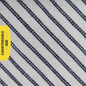 人気のポリエステル綿の縞模様の生地390g白地の綾が厚くなっています。