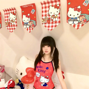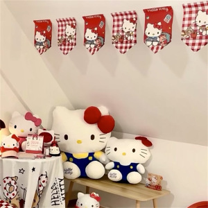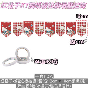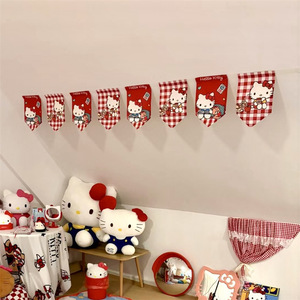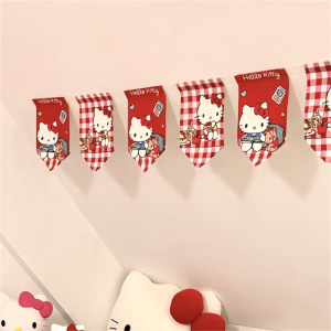 ハローキティかわいい寝室の装飾寮の壁のケイティ猫は旗の赤い格子のkt猫の板紙の壁を引っ張ります。