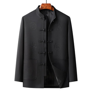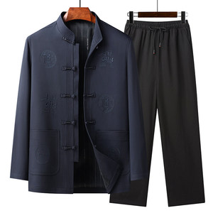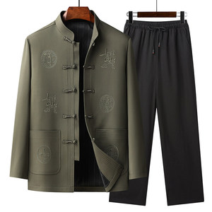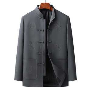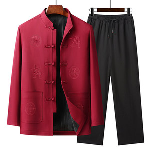 中老年男士唐装春秋爸爸套装老年人过寿生日衣服中国风外套爷爷装