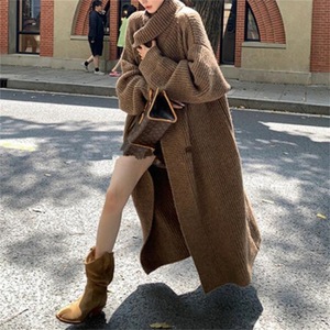 クロスボーダーのゆったりした怠惰な風の長いニットのカーディガンの上着の女性の秋冬の新型の韓国版の柔らかいモチモチの立襟のセーターのコート