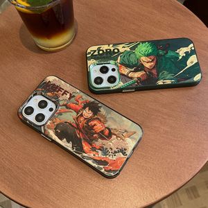IMD彩銀日漫卡通路飛索隆リンゴ15pro携帯ケースiphone14ワンピース13高級感