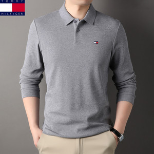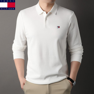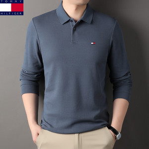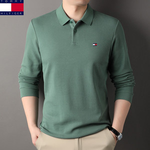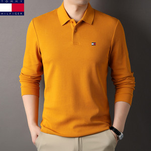 アメリカのトミートミー男性ファッションシンプルな純色襟長袖poloシャツメンズ綿tシャツ代発