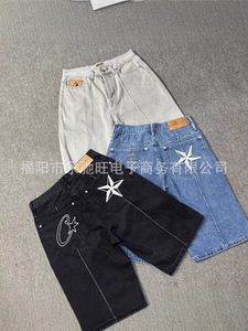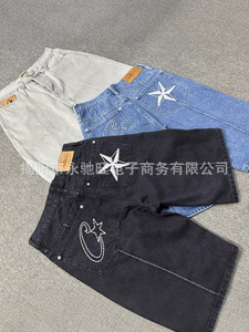 ファッションの潮のブランドの越境している新型のコルセットの悪魔の島のジーパンの星はジーパンの男性のファッションの潮流を刺繍します。