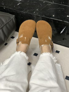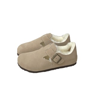 毛毛鞋豆豆鞋秋冬女棉鞋一脚蹬真皮羊毛里保暖加绒勃肯鞋厚底男士