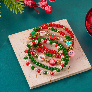 欧米の新しいクリスマスのブレスレットのファッションはクリスマスの水晶の米のビーズのブレスレットの組み合わせのセットの現物の卸売りになります。