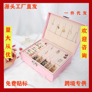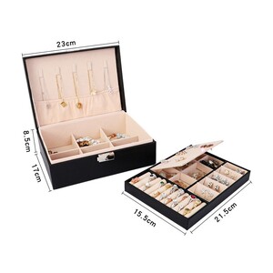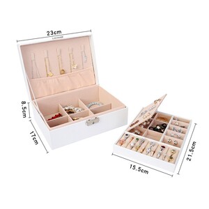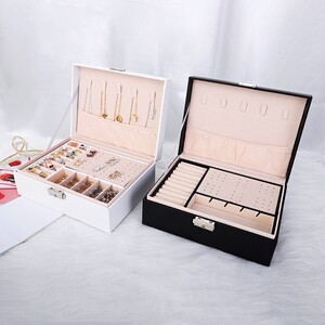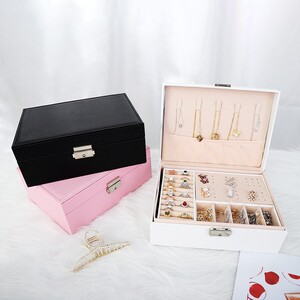 大容量ダブルPUレザーロック付き革ジュエリーネックレスリングブレスレットピアスジュエリー収納ボックス