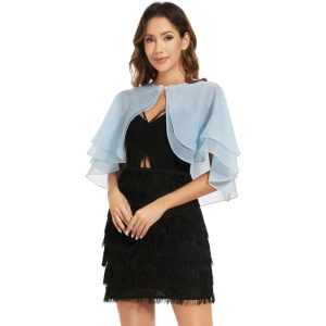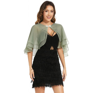 マントの夏の薄いタイプの欧米の対外貿易の新型の純色の丸首の金属は二重の辺の新婦のマントの女性の日焼け止めの服を掛けます。