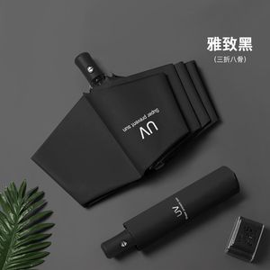 自動雨傘UV厚手黒ゴム日焼け止め晴雨傘折り畳み晴雨両用男女高級感日傘卸売り