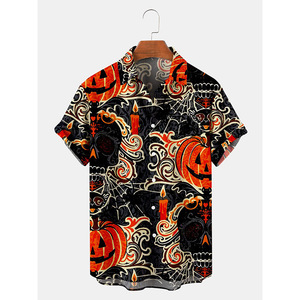 新型クロスボーダー3d半袖シャツハロウィーンプリントシャツゆるいパーティー男性シャツ欧米DIY来図
