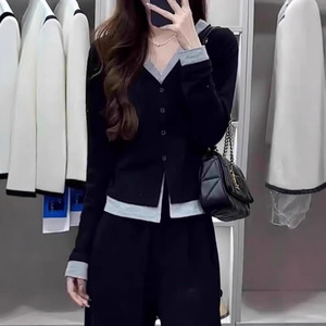 アメリカのギャルのデザイン感の偽の2つのvネックの上着の女性の秋の小さい大衆は純粋に身を修めたいです。
