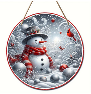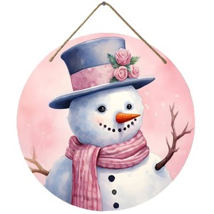 クロスボーダー起爆クリスマスピンクスカーフ小さな雪だるま木製円形木製ブランド装飾冬のアイデア装飾看板