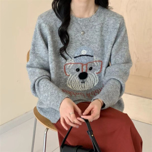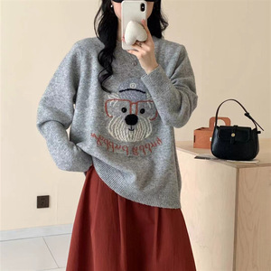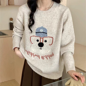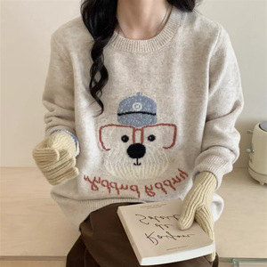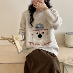 韓国版の漫画の子犬のアルファベットのニットの丸首のセーターの女性の百合の怠惰な風のゆったりしている保温の気質の上着の女性の潮
