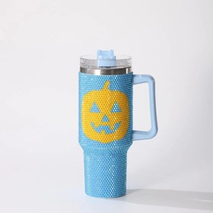 ハロウィーンカボチャ保温カップ40オンス大容量ステンレスストローカップにドリル車載ハンドル付きアイスカップ