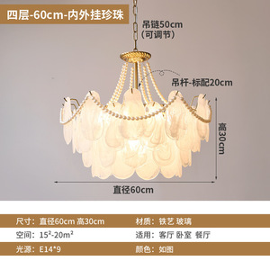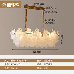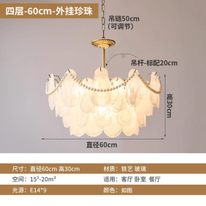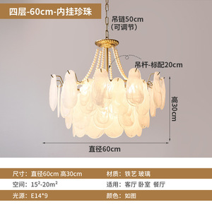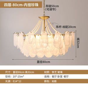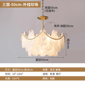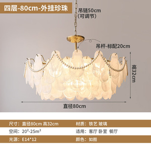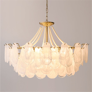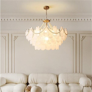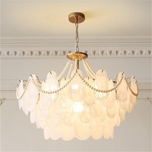 軽豪華フランス全スペクトル客間シャンデリア復古シンプル現代水晶真珠貝殻主寝室レストラン照明