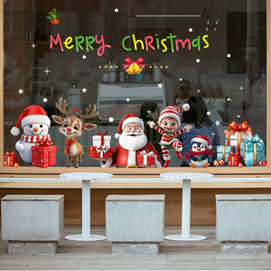 愛客jd 6908クリスマスヘラジカギフトボックス英語ガラス貼り寝室窓装飾ゴムなし静電貼り