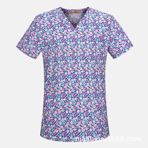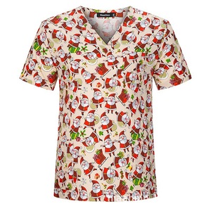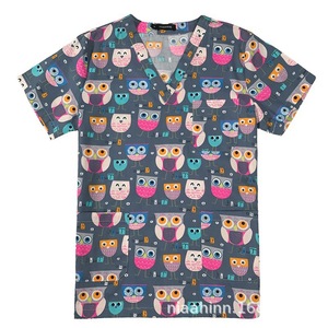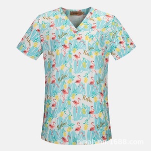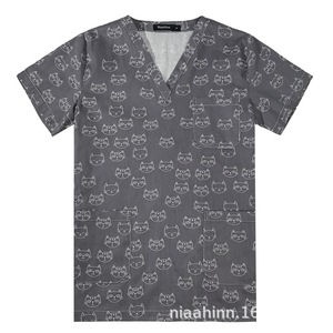 国境を越えたアマゾンの爆発的なアニメプリント看護師服女性vネック半袖tシャツ上着手術服作業服男性