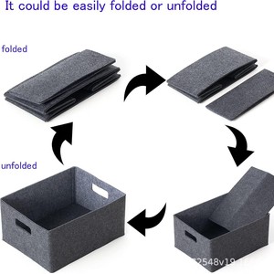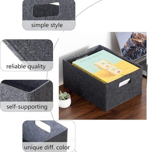 自己支持折り畳み可能なフェルト収納バスケット、濃い灰色、おもちゃやオフィスファイルを保管するため
