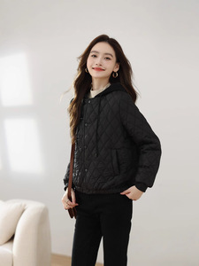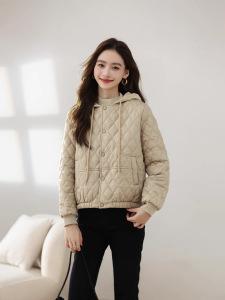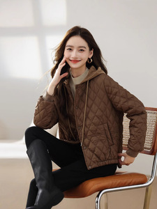 現物卸売りの外国貿易菱格の軽薄なコートファッション冬服韓国版カジュアルでやせているショートタイプの帽子付き保温コート