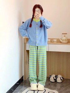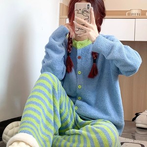 韓国版の高級な色合わせの珍貝のパジャマの女性の冬の新型の厚い保温の部屋の服の日本式のスーツは外で着ることができます。