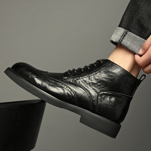 マーティンブーツ男高助ブロック英倫工装靴牛革手作りレトロカジュアル厚い底皮ブーツ男とベルベット