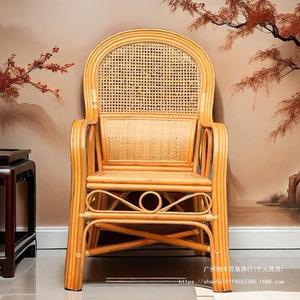 籐椅子椅子真藤オフィスチェアウエストガードカジュアル家庭用高齢者用高背もたれ籐椅子リビングテン椅子シングル竹籐