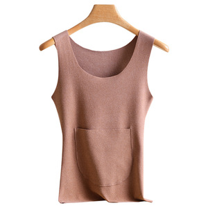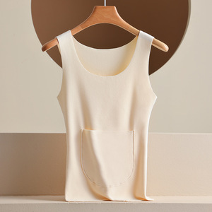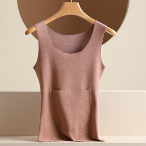 無痕両面徳絨毛保温ベスト女性の前後にポケットを入れて発熱して腹を保護します。
