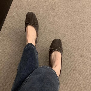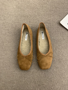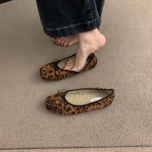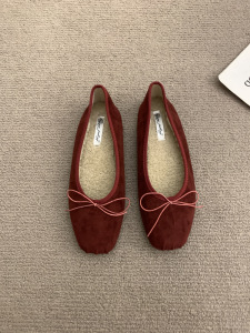 复古绒面方头浅口加绒单鞋女秋冬新款通勤一脚蹬瓢鞋平底豆豆鞋子