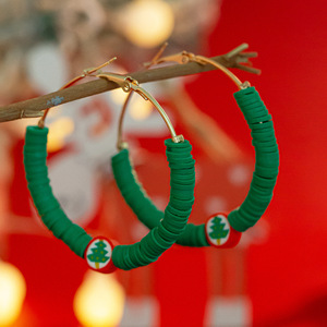 欧米のクロスボーダーの装飾品のクリスマスのカラーの柔らかい陶のearringsのスーツの個性の手描きの幾何学型のイヤリングの女性