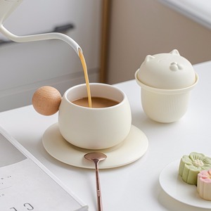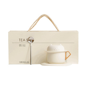 かわいい猫のティーカップ(スプーン付き)+コースター+ギフトボックス
