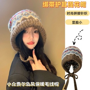 レトロなジャカードのニットは毛糸の帽子を持っています。