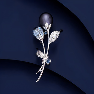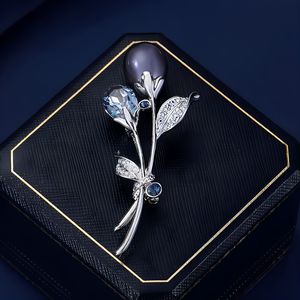 精致紫空花胸针高档女奢华水晶珍珠胸花设计感郁金香别针礼服配饰