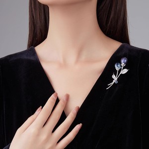银色紫空花胸针