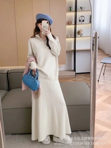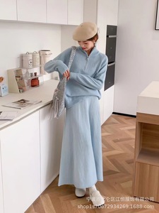 欧米風セーターセット レディース 秋冬 無地 長袖 ハーフジップニット マーメイドスカート ツーピースセット おしゃれ 多彩に着こなせる