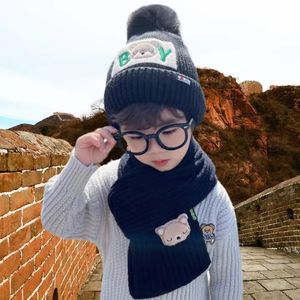 2024 秋冬子供帽子クマニット帽女の子プラス綿暖かいベビーウール帽子スカーフ 2 点セット