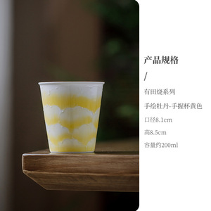 12. ヨクタヤオ 手描き牡丹 初心カップ イエロー